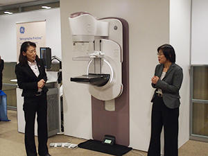 さらに,小山氏は,Senographe Pristinaの開発にかかわった経緯について話した。小山氏は2008年11月から複数回フランスへ渡り,操作性などのヒアリングに参加してきた。その結果,日本人をはじめとしたアジア人女性に乳房を考慮した装置ができたと説明した。