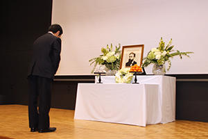 続いて,代表取締役社長の上田輝久氏による祭詞・献花が行われた。