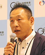 次に,八王子市医療保険部成人健診課課長の大山 崇氏と主査の新藤 健氏が,八王子市におけるがん検診の取り組みを紹介した。八王子市は,がん検診における精検受診率が全国と比較して非常に高いことで評価されており,マーケティング手法を活用した受診推奨資材の活用など,がん検診受診率向上の取り組みが行われている。今回は,これまでの取り組みに加え,早期大腸がん発見のため新たに導入が予定されている成果報酬型官民連携モデルの説明があった。