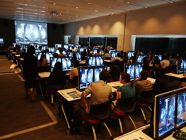 会場には,事前登録できなかった立ち見の見学者も多く,参加者は実際にビューワを使ったトモシンセシスの読影に熱心に取り組んでいた。メーカー共催企画としては大規模であり,かつ同社としてもグローバルで最大規模のイベントとなった今回のワークショップは,盛会のうちに終了した。