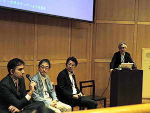 パネルディスカッションの様子。左からムサディク・アワン氏,宇野 隆氏(千葉大学),神宮啓一氏(東北大学),モデレーターの中川恵一氏(東京大学)