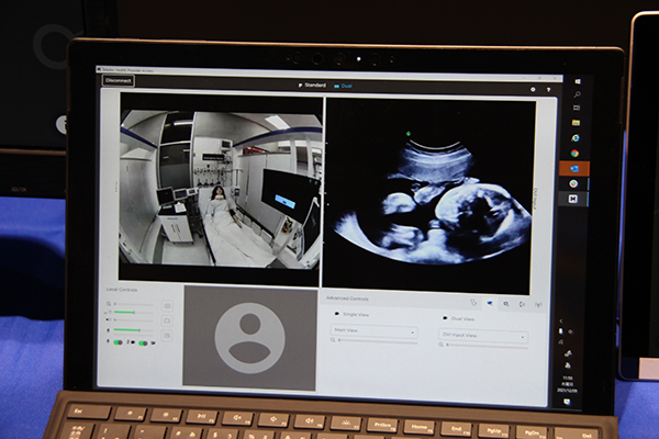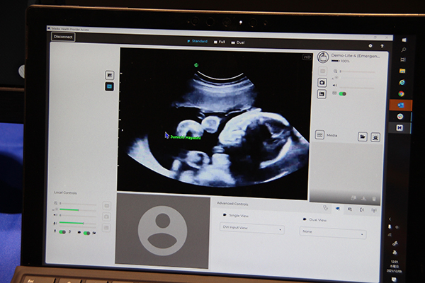 遠隔地から超音波画像上にポインタを表示でき,円滑な意思疎通が可能
