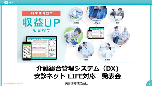 今回発表された介護総合管理システム「安診ネット」LIFE対応は,2022年6月1日より販売代理店などを通じて発売される。なお,発表会はYouTubeにて視聴することができる。