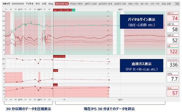 Abierto Cockpit for ERは,救急初療室向けのソリューション。院内に設置されているセントラルモニタや病院情報システムから収集されたバイタルサイン,血液検査結果,患者基本情報を1つの画面で統合表示することができる。患者データを経時的に表示し,各トレンドの変化を画面表示や音声で通知することで,治療に集中している医師らの情報の見落とし防止や,スタッフ間の情報共有,マンパワー不足などを支援し,救命率向上に貢献することが期待される。本セミナーでは,近年,導入が進んでいるアンギオCTが設置された救急初療室であるハイブリッドERの概要と,ハイブリッドERにおけるAbierto Cockpit for ERの活用事例などが紹介された。
