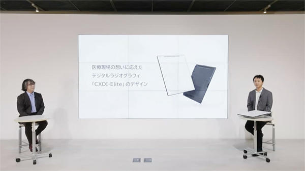 キヤノン(株),キヤノンマーケティングジャパン(株)は,キヤノンのデザイナーによるオンラインセミナー「Meet-up Canon Design 2023」を,2023年11月28日(火)に開催した。セミナーでは,同社の総合デザインセンターに所属するデザイナーが出演し,自らがデザインしたプロダクトについてコンセプトやねらいを解説した。プログラムでは,大口径望遠ズームレンズ,在宅ワーク向けのプリンタなど,「2023年度グッドデザイン賞」受賞製品を中心とした最新のデザイン事例が取り上げられた。『医療現場の想いに応えたデジタルラジオグラフィ「CXDI-Elite」のデザイン』では,プロダクトデザイン担当の山本貴裕氏とユーザーエクスペリエンスデザイン担当の吉野 彰氏が登壇した。CXDI-Eliteは,CXDIシリーズのハイエンドモデルとして2023年に発売され,フルサイズ(CXDI-420C),半切サイズ(CXDI-720C Wireless),大四サイズ(CXDI-820C Wireless)などをラインアップする。従来モデルより高感度化を図り,Built-in AEC Assistance機能でポータブル撮影時でのAECの利用を可能にしてX線撮影の利便性の向上を図っているのが特長だ。