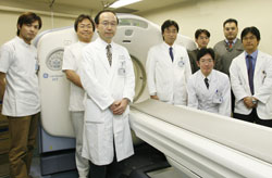 左から、中村祐二朗技師、岡野義幸技師、栗林幸夫教授、陣崎雅弘医師、山田 稔特別研究員、井上征雄医師、小松龍士訪問研究員、佐藤浩三医師 |
