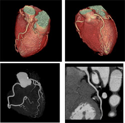 ほとんどの心臓CT検査では、これらの画像をGE社製三次元画像処理ワークステーション「Advantage