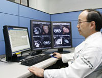 慶應義塾大学病院では、 4列MDCTによる冠動脈CTを2000年から開始しています。MDCTが衝撃的デビューをした1998年から、わずか2年後のことです。以後、心臓CTは8列、16列MDCTへと進み、2005年1月にはアジア地域で初めて、GE社製64列MDCT「LightSpeed