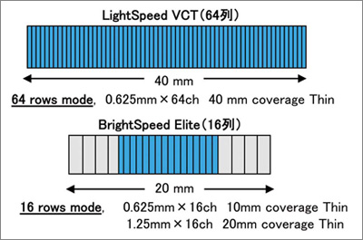図1 VCT(64列)とBS Elite(16列)のディテクタ構成 |