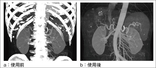 MiP(Maximum Intensity Projection)像は,病変と脈管との関係の情報を得るために必須の画像であるが,いかに簡便に骨抜きを行うかが問題となる。