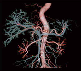 図7 肝動脈と門脈の重ね合わせ画像 |