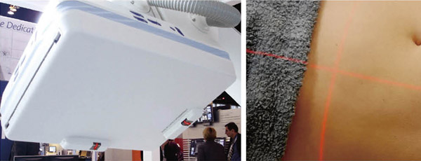 フラットディテクタの前面に赤色クロスラインマーカーを搭載し,体表面上にターゲットポイントを投影する。非血管系IVR時に有用であるほか,パンニング時の透視回数を減らすことができる。 |