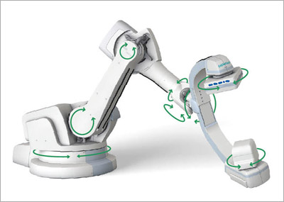 このように,多軸方式Cアームは原理的に多様な応用可能性を有しており,運用面・臨床面で多くの優位性を生み出すと考えられます。以上のような背景のもと,「多軸血管撮影装置」の開発がスタートし,2007年に「Artis zeego」が発表されました。 |