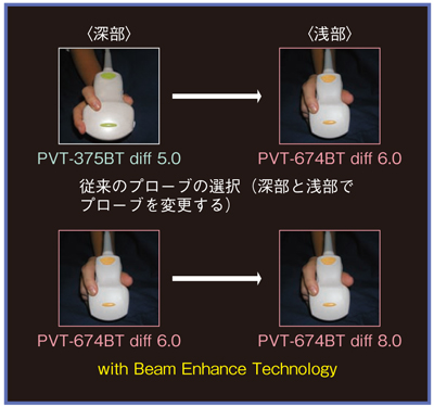 将来的にはBeam Enhance Technologyの適応によって,より高い周波数のプローブを選択することが可能になり,病変の深さによって使用するプローブを変えることなく検査が可能になることが期待される(図12)。