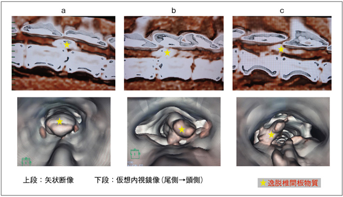 ![]() 図5 仮想内視鏡像での逸脱変性椎間板物質の形状 |